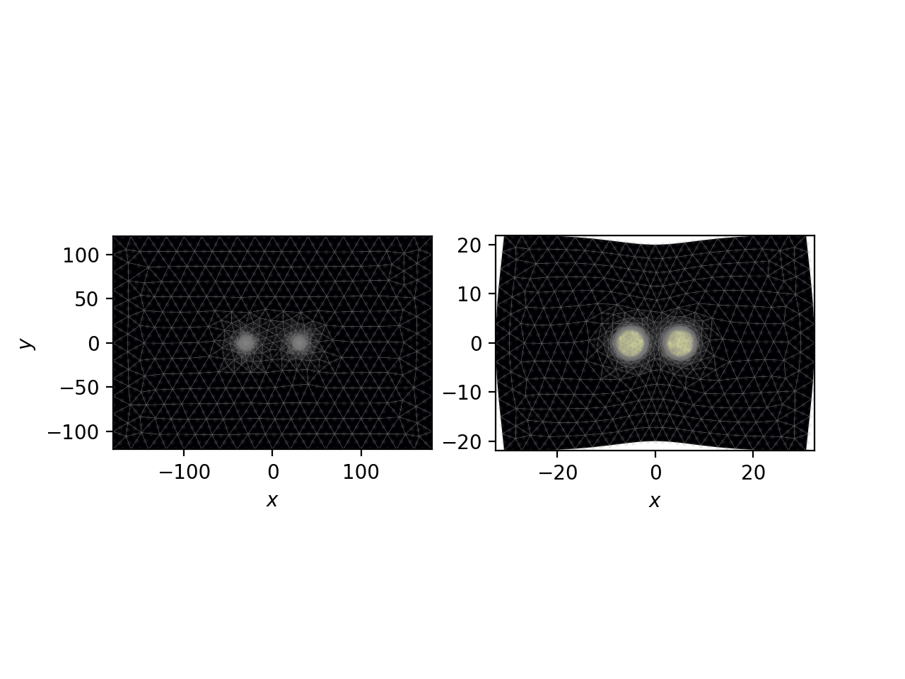 In order to improve the regularity of the triangles, the outer cladding boundary is allowed to deform as the two cores are brought closer together.