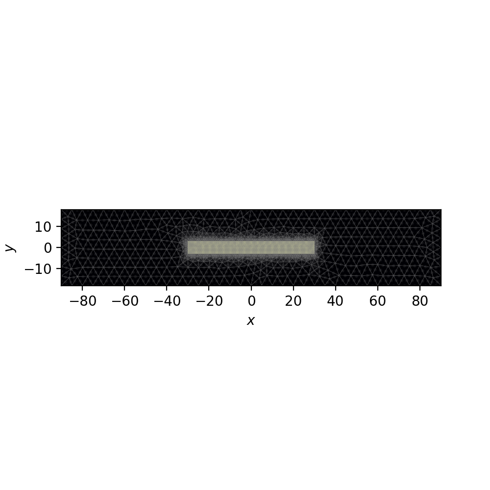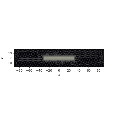 In our \(1\times 3\) MMI coupler design, the access waveguide is centrally connected to one end of the central slab. Thus, to determine our launch field in the central slab, we will first do a mode solve of the access waveguide.